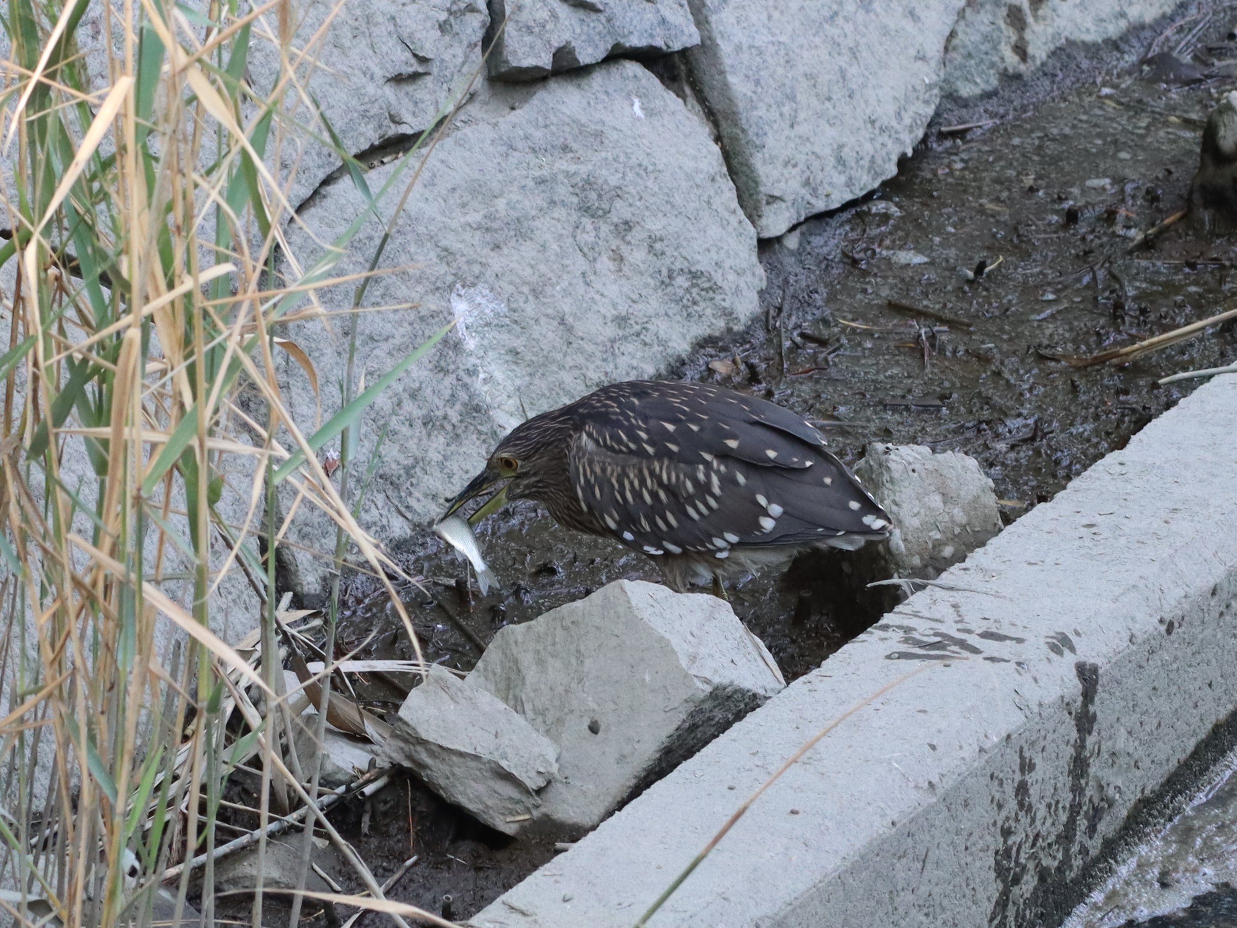 幼鳥は灰褐色の翅に黄白色の紋が分布し、紋を星に見立ててホシゴイと呼ばれる。