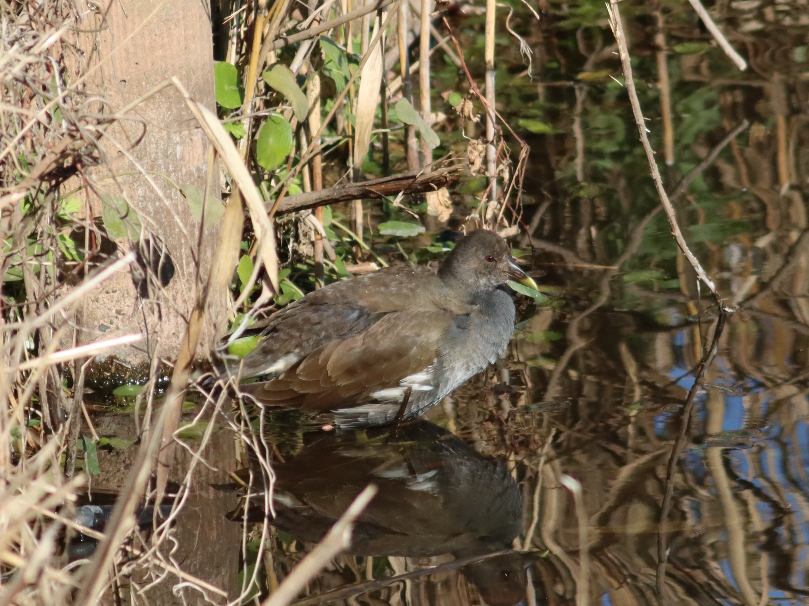嘴と額板は繁殖期は赤色をしているが冬は黄色になる。水田などの湿地を