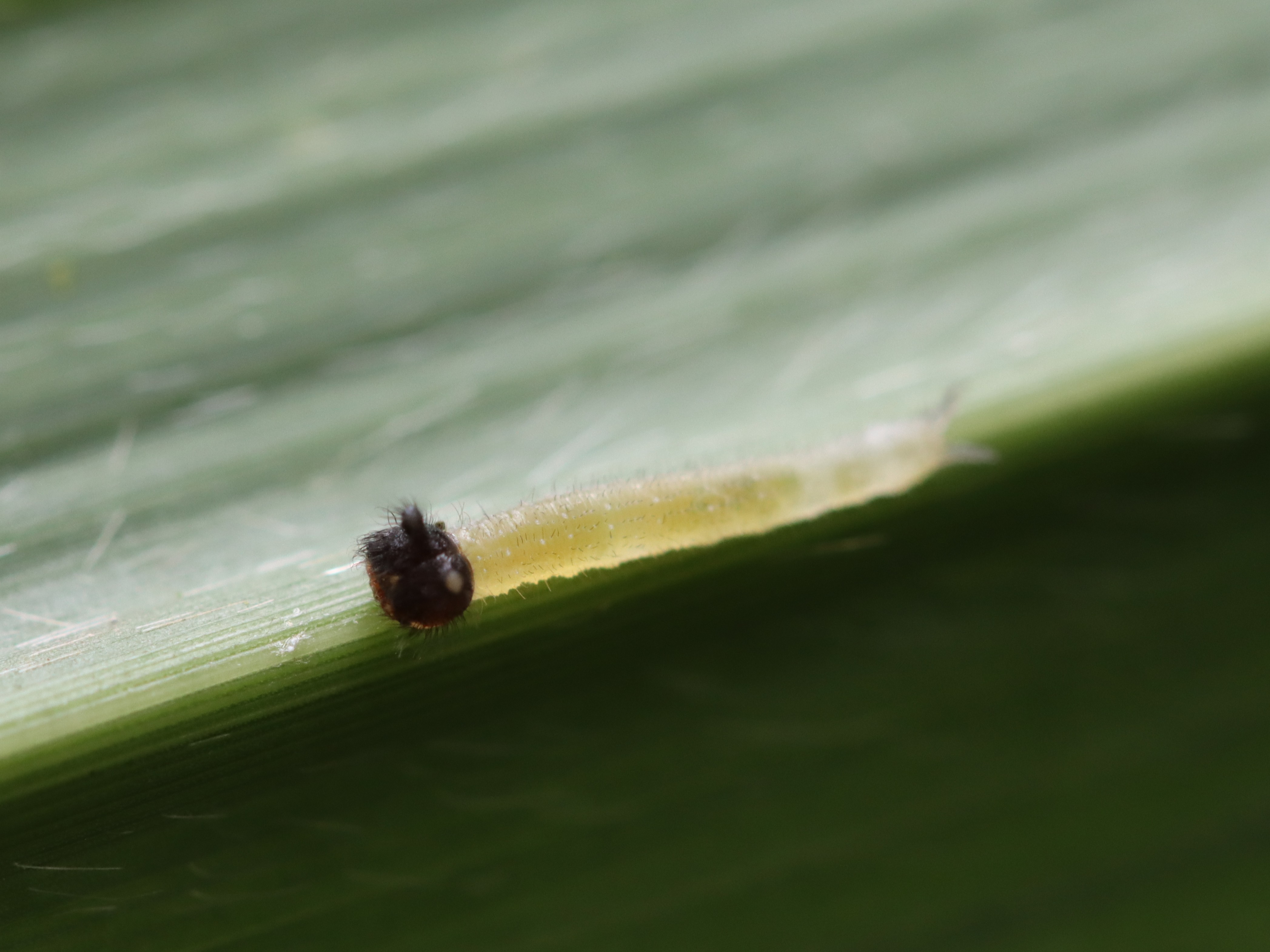 幼虫の食草はススキ、ジュズダマなど。