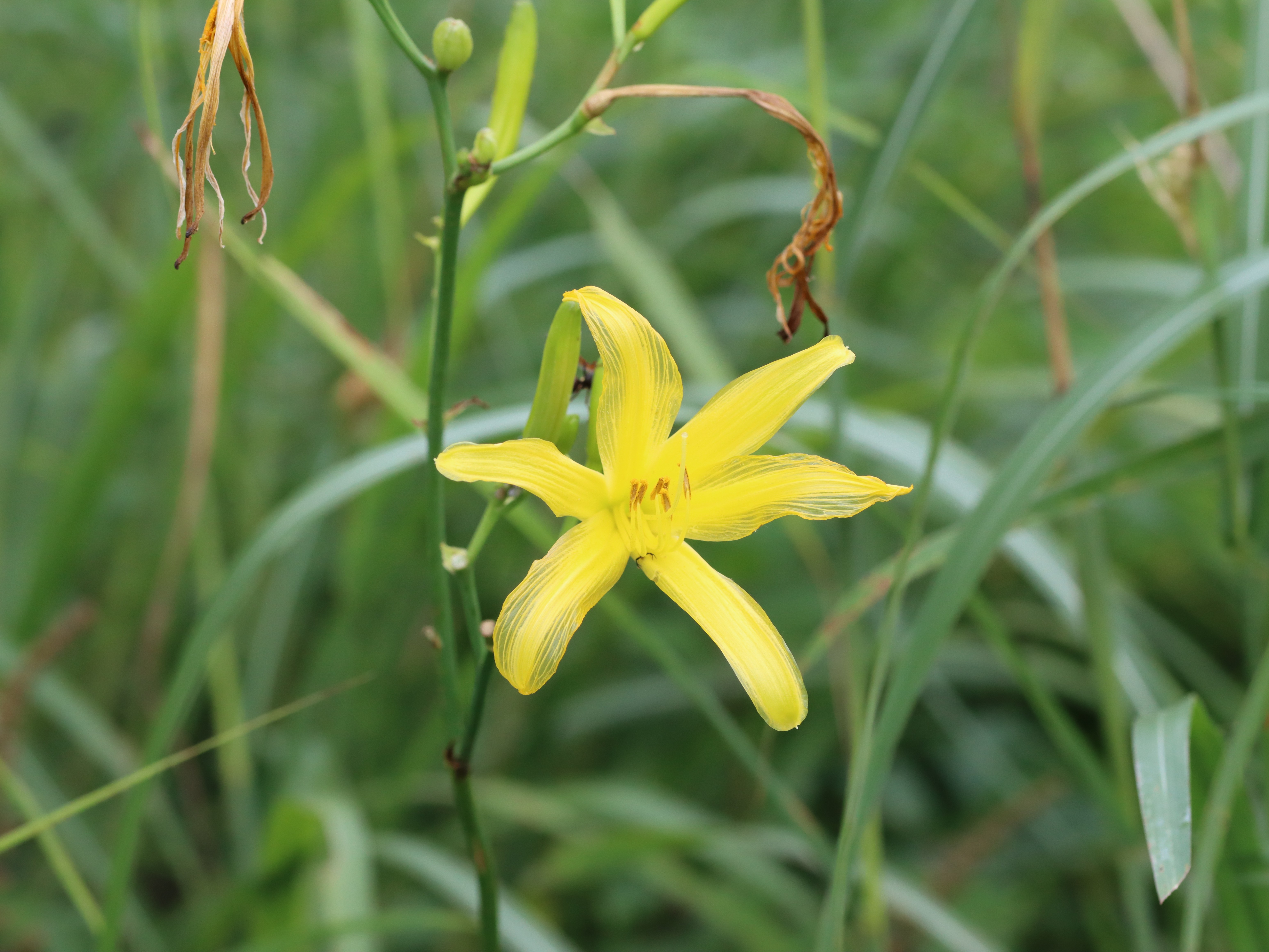 花が夕方に開き翌日の午前中にしぼみ、葉がスゲに似ていることからこの名がついた。